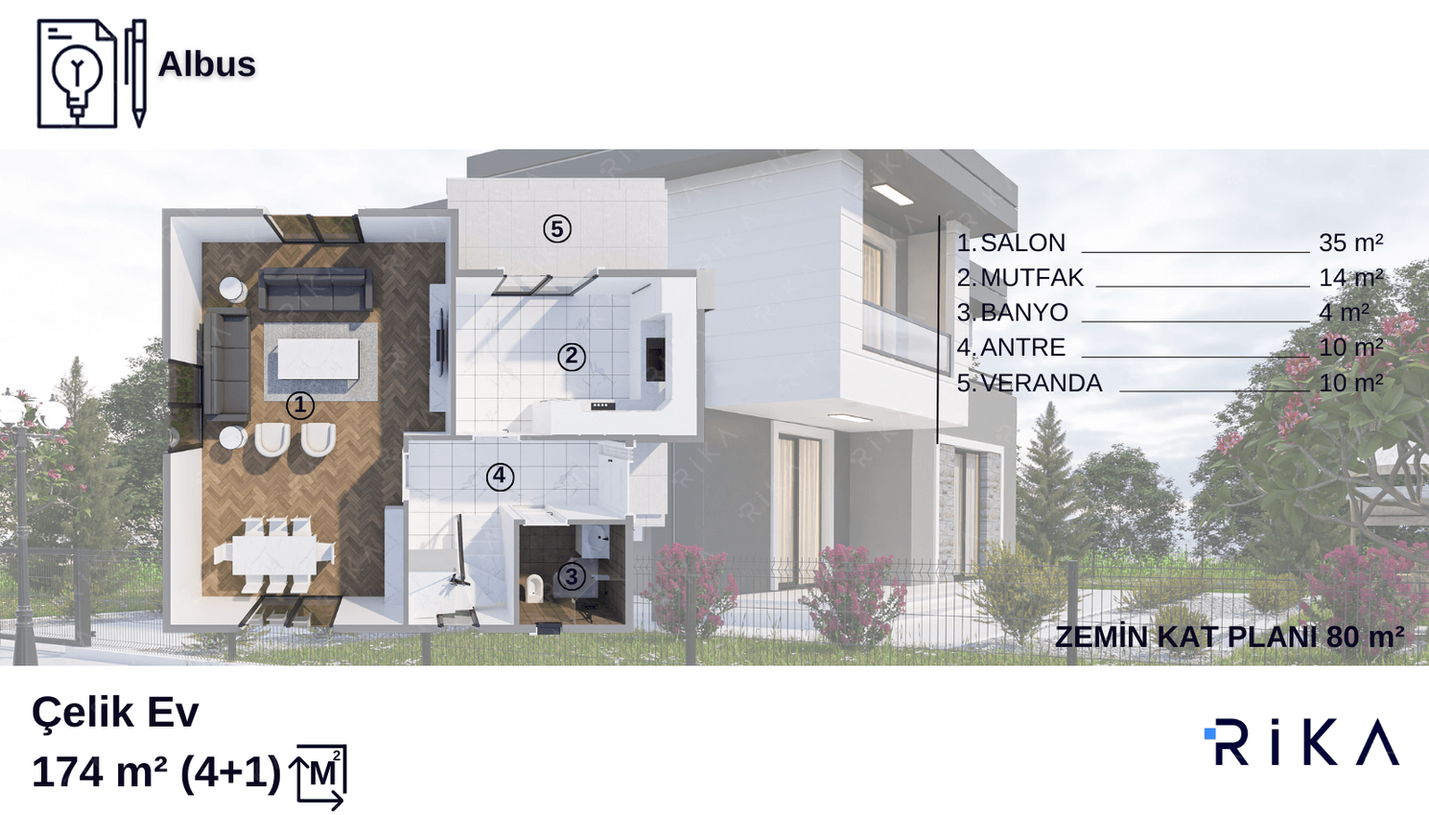 Ev sahibi olmak bize gelen her müşterimizin hayalidir. Biz de Rika olarak evlerin yapımında kullandığımız malzemelerle güvenli bir ortam oluşturmaya çalışarak müşterilerimiz için en iyi hizmeti vermeye çalışıyoruz. Görünüş ve Şıklık her zaman muhteşemdir. Ancak bize göre asla ihmal edilmeyecek kadar önemli olan husus, güvenliktir. Bu yüzden yapılarımızda kullandığımız bütün malzemeler bu amaca hizmet etmeyi hedeflemektedir. Bu sebeple yapılarımızda hafif çelik malzemeleri kullanıyoruz; diğer inşaat materyalleri ile beraber bu madde, yapısını üstlendiğimiz evlerimize en yüksek seviyede güvenilirlik sağlar. Böylece müşterilerimiz maksimum rahatlama ve emniyet hissi yaşar, onlar için daha mutlu bir hayat sürmelerini sağlamış oluruz.